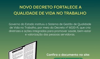 Notícias do Qualivida 05/12/2025 Rede Qualivida conclui primeiro ciclo de mentoria para fortalecer ações de bem-estar no serviço público Formação reuniu servidores de 21 órgãos para o desenvolvimento dos Programas Locais de Qualidade de Vida no Trabalho (PQVT). Leia mais 23/10/2025 Governo do Estado institui Sistema de Gestão de Qualidade de Vida no Trabalho Novo decreto cria diretrizes e rede de ações integradas para promover bem-estar e saúde no serviço público estadual. Leia mais 26/02/2025 ‘Servidor em Movimento’: projeto piloto leva dança e saúde ao ambiente de trabalho Aula de zumba envolve servidores em uma experiência de bem-estar e descontração no ambiente de trabalho. Leia mais 07/02/2025 Rede Qualivida se reúne para debater o futuro da qualidade de vida no serviço público capixaba Encontro discutiu a regulamentação da Política de Qualidade de Vida no Trabalho na Administração Pública Estadual Leia mais Ver Todas